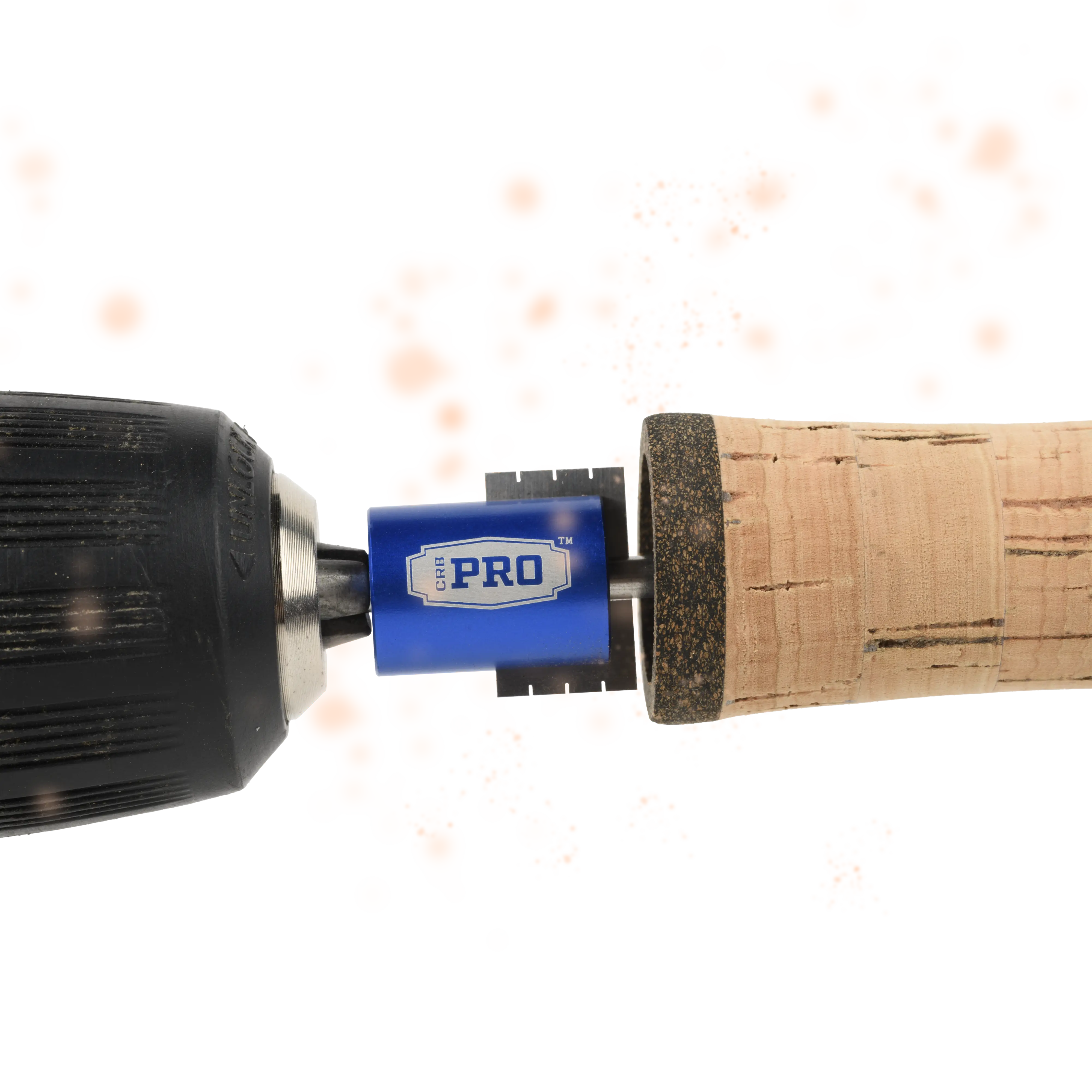 The set includes five interchangeable blades (.760, .810, .850, .900, and .950) so you can achieve a perfect fit no matter the reel seat size. A 6mm anodized aluminum sleeve holds the extended guide shaft firmly in place, stabilizing each cut for professional-quality results. The sleeve is sized for .250" ID cork grips and can be arbored with tape to fit larger diameters.