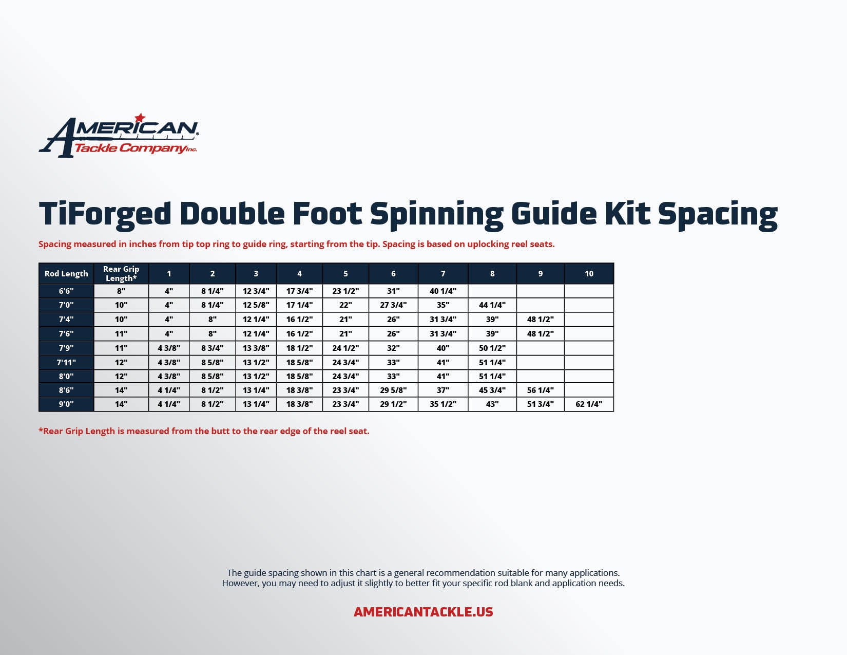 - Size 30–8 set for rods up to 7'6"; Size 40–10 set for rods up to 9'
