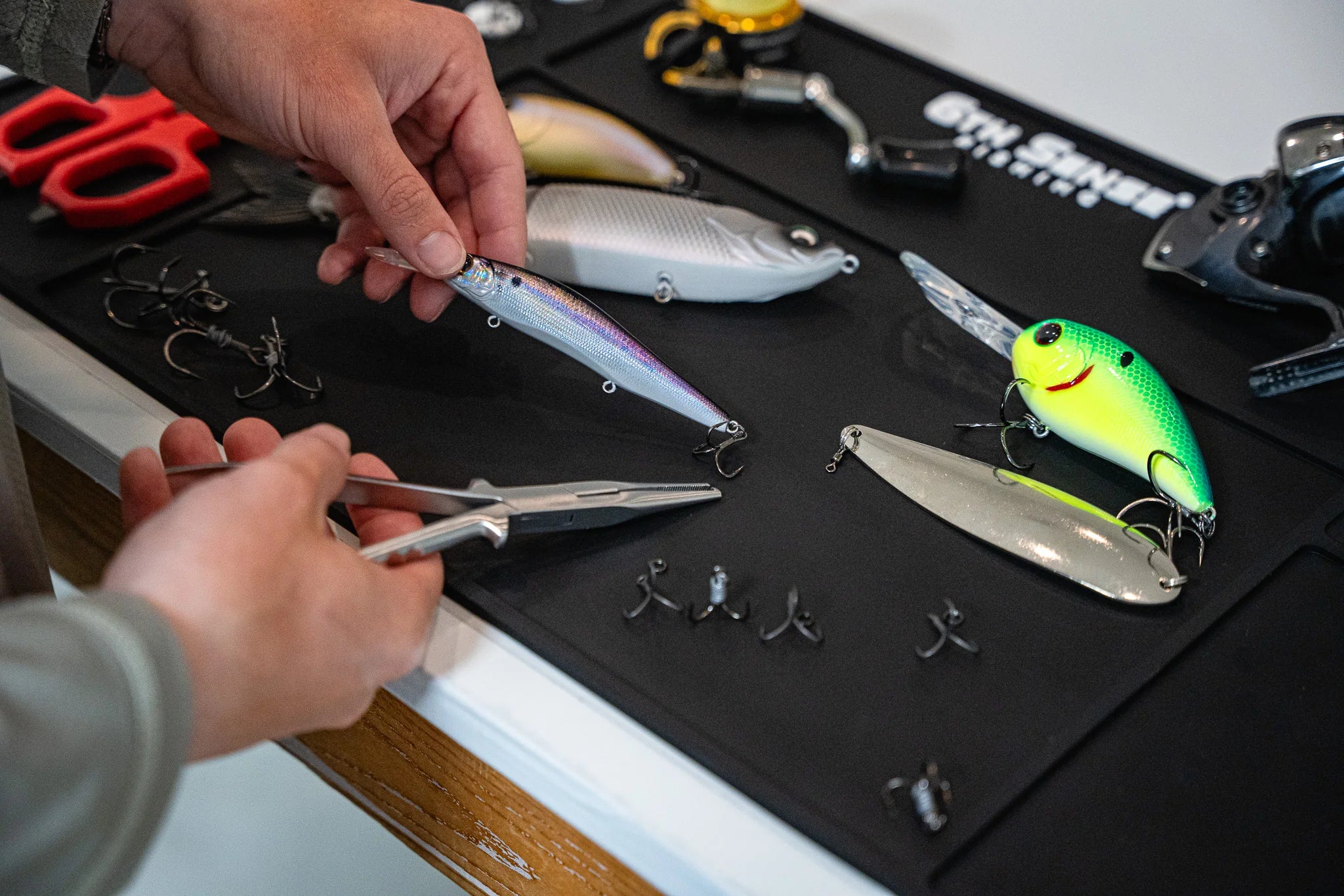 From reel rebuilds to bait swaps, this mat keeps your gear where it belongs—clean, secure, and ready to fish.
