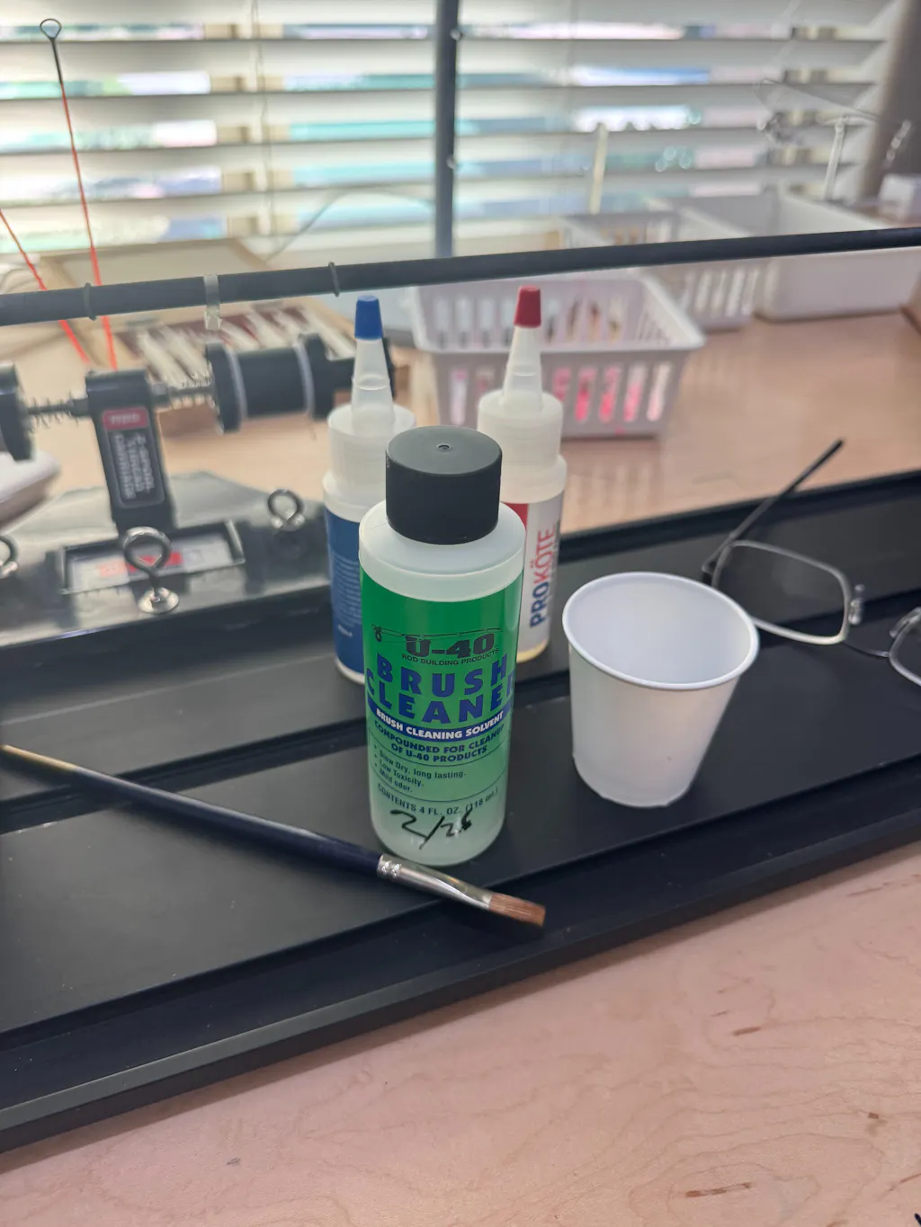 The U-40 Brush Cleaner Solvent is specially formulated for rod builders to clean brushes used in applying U-40 rod finishes. Effective on both epoxies and urethanes before they cure, this cleaner helps extend the life of your finishing brushes and keeps your workspace neat.